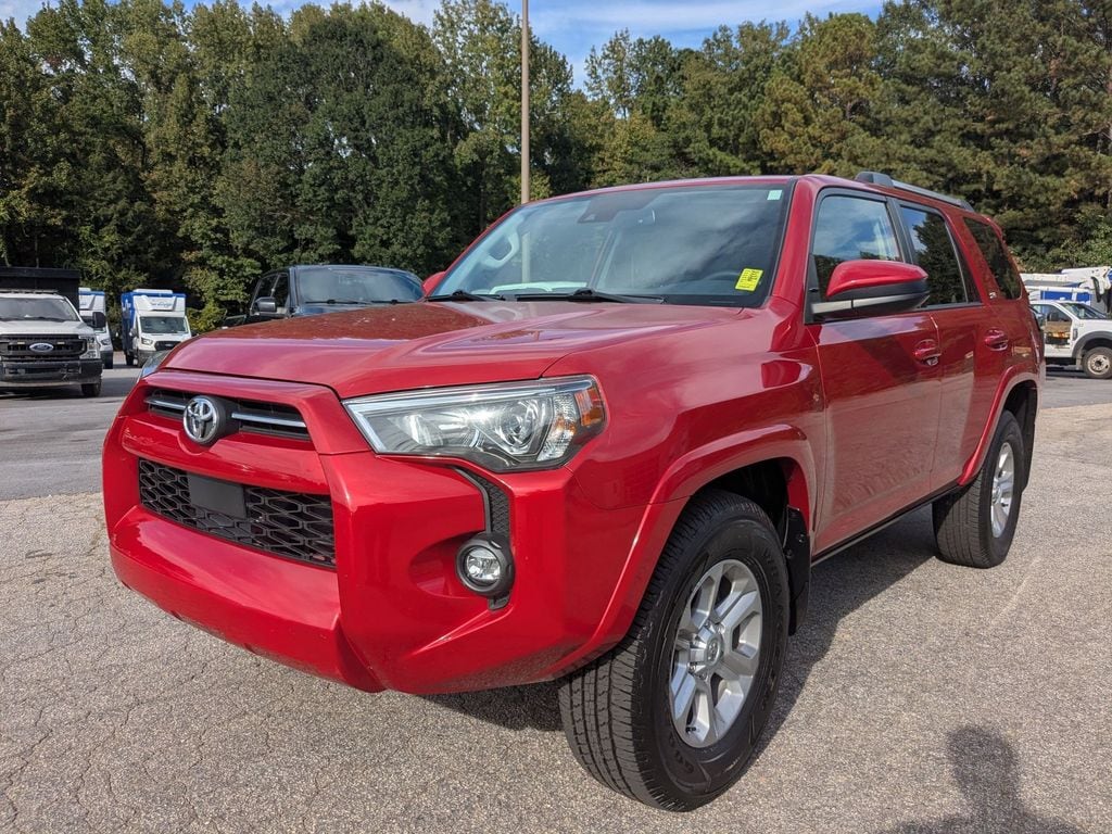 The vehicle has a clean AutoCheck report. See what's behind you with the back up camera on this model. This unit warns of approaching vehicles with Cross-Traffic Alert. The vehicle has only one previous owner, verified by AutoCheck. This 2024 Toyota 4Runner comes equipped with Android Auto for seamless smartphone integration on the road. It features a hands-free Bluetooth phone system. This model enhances safety with a blind spot monitor, alerting drivers to potential dangers in adjacent lanes. The vehicle offers Apple CarPlay for seamless connectivity. This mid-size suv gleams with a flashy red exterior. This model has a V6, 4.0L high output engine. It is rear wheel drive. This 2024 Toyota 4Runner has fog lights for all weather conditions. The high efficiency automatic transmission shifts smoothly and allows you to relax while driving. With the adjustable lumbar support in the vehicle your back will love you. This unit features cruise control for long trips.